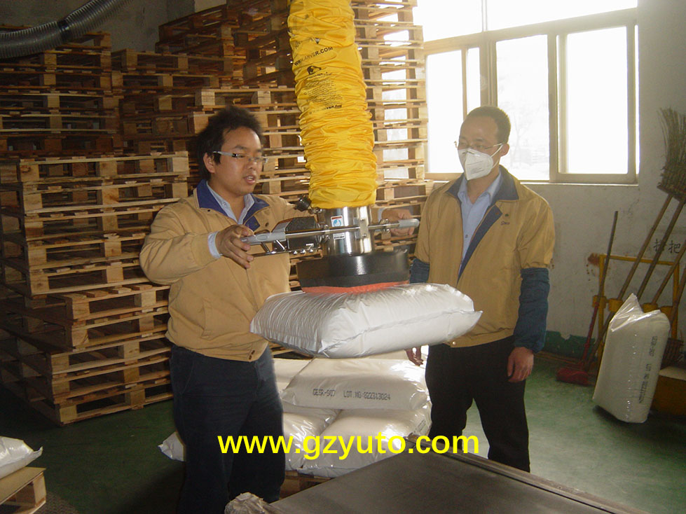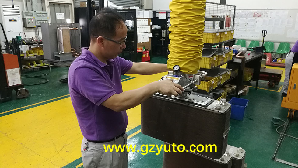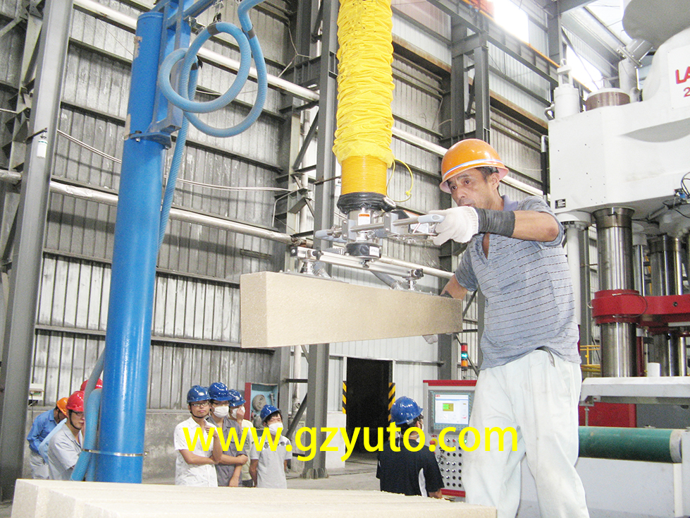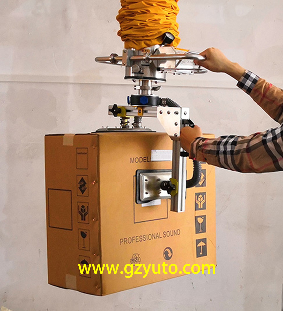 該設(shè)備通過(guò)真空吸盤來(lái)吸附物體, 吸住、上升、下降和釋放物體僅靠單手操作即可, 不需要任何其他外力。 用真空吸盤吸附物體比用吊鉤或者夾具的優(yōu)點(diǎn)在于不必?fù)?dān)心吸盤損壞產(chǎn)品的表面或者邊緣。