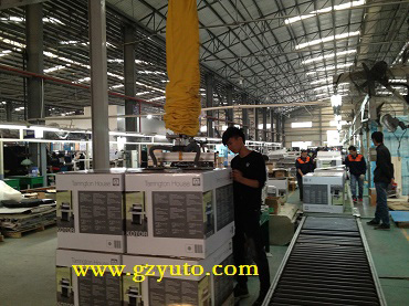 對(duì)于70多公斤的成品紙箱,有的重量甚至超過140公斤,某家電制造龍頭企業(yè)開始考慮引進(jìn)自動(dòng)輔助搬運(yùn)設(shè)備來降低成本以保證生產(chǎn)線高效運(yùn)轉(zhuǎn)。通過持續(xù)改進(jìn)“物料搬運(yùn)和成品碼垛”流程,實(shí)現(xiàn)擴(kuò)大產(chǎn)能和杜絕工傷事故的發(fā)生。