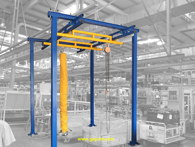 軌道起重機(jī) 懸掛式軌道有架式鋼軌和全鋁合金軌道供選擇, 可節(jié)省地面空間, 與真空搬運(yùn)機(jī)配合使用, 能夠在大范圍內(nèi)移動(dòng)。 自立式軌道的4根立柱立于地面上, 桁架式軌道與懸掛式相同 。 各種長(zhǎng)度尺寸可定制, 大小規(guī)格供選擇。