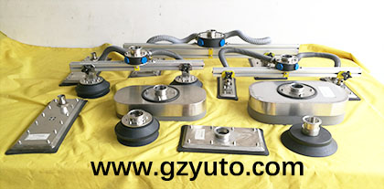 吸盤(pán)總成 專(zhuān)為各類(lèi)紙箱、板材和玻璃等物體設(shè)計(jì), 包括鋁合金橫梁和吸盤(pán)等組件。 鋁合金橫梁堅(jiān)固耐用, 美觀大方。 吸盤(pán)膠條采用丁晴橡膠,吸力大, 安全系數(shù)高。 吸盤(pán)固定結(jié)構(gòu)采用304材質(zhì),徹底告別銹蝕,提升操作感受。松開(kāi)緊固手柄,吸盤(pán)間距可調(diào),在鋁橫梁上可順滑移動(dòng),匹配不同規(guī)格尺寸物體。兩個(gè)吸盤(pán)可傾斜45°,完美貼合物體表面。 根據(jù)物體材質(zhì)狀況,也可選用不同規(guī)格的圓吸盤(pán)或雙層吸盤(pán)。 吸盤(pán)總成帶有通用接頭, 為我們品牌特有裝置, 能夠在20秒鐘內(nèi)完成不同吸盤(pán)間的更換, 適用于不同類(lèi)別物體搬運(yùn)。